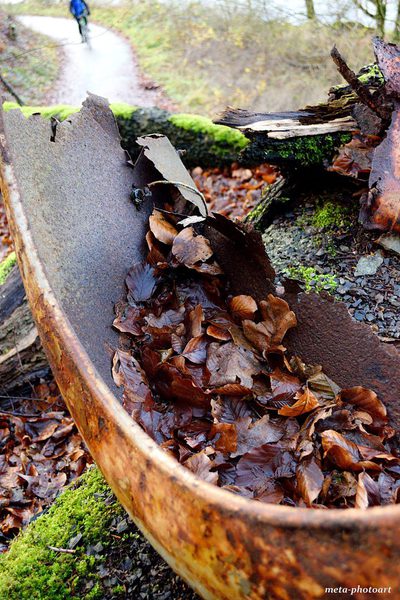 Ein Spaziergang, durch die Stadt, im Grünen, oder auf irgendeiner Straße. Überall findet man Müll, die verschmähten Überreste unserer Zivilisation. Ärgernis und doch ... manchmal muss man nur genau hinschauen. Manchmal erzählen diese achtlos liegengebliebenen Dinge eine eigene kleine Geschichte. Man muss der Phantasie nur Flügel geben. Auch diesen Dingen kann eine ganz spezielle Ästhetik innewohnen, gerboren aus dem Kontrast aus natürlichen und künstlichen Strukturen, aus Farben und Glitzern, aus der Anpassung in die Natur oder der Rückübernahme durch die Natur.